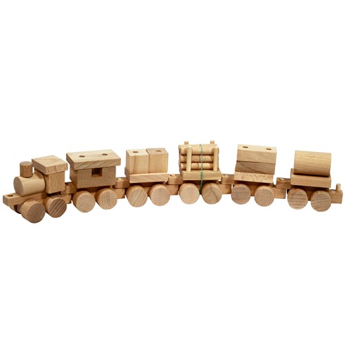 Two toys in one: a wooden train, and a construction kit. The wooden train is linked to its carriages with wooden hooks and thus can be disconnected and re-connected again. Thanks to the traditional building blocks (cargo of the train) the train offers endless building possibilities and your child will never grow tired of it. While playing with this wooden train children develop their imagination, fine motor skills, spatial relation, problem solving with critical thinking and memory. Truly natural and ecological toy.